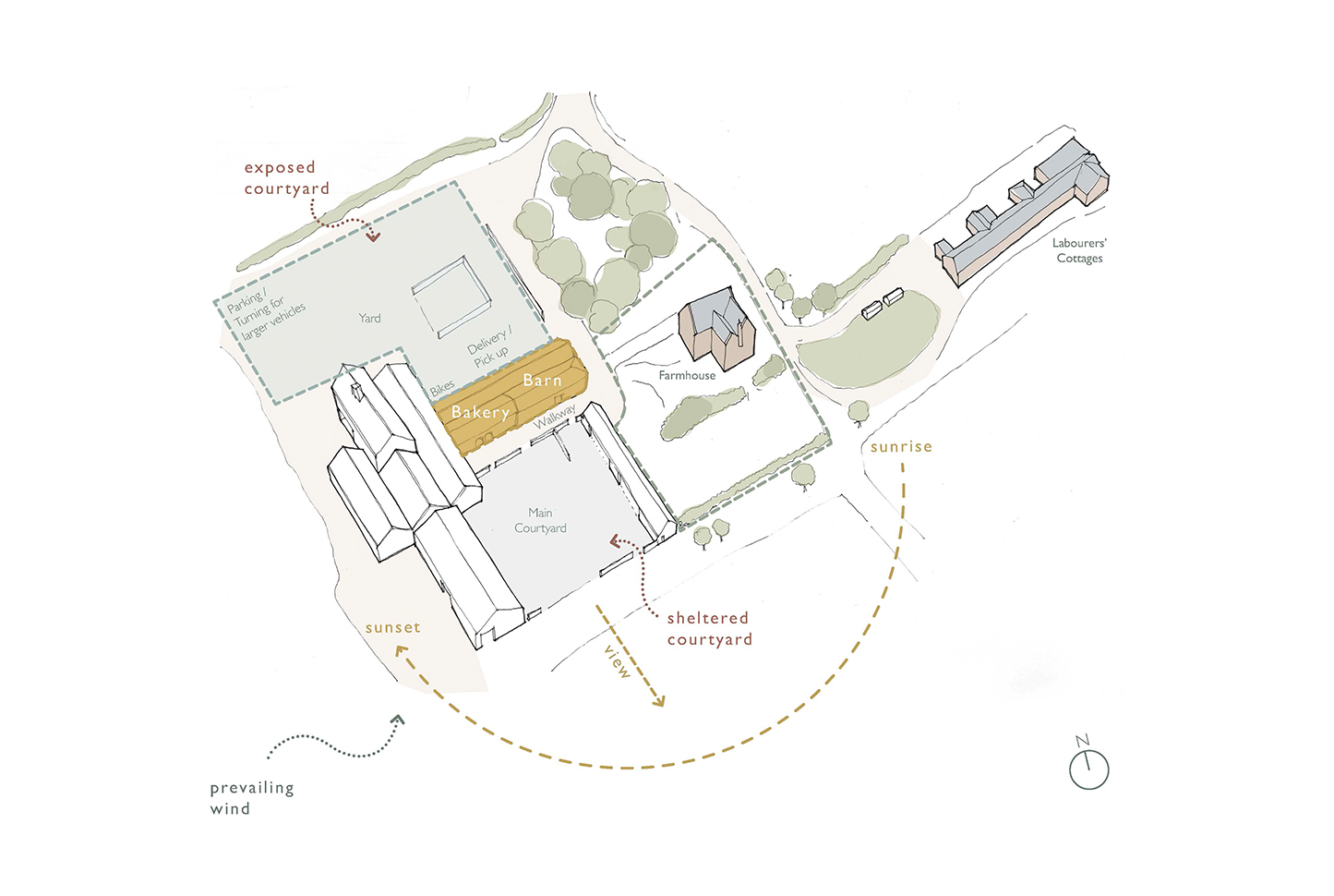 The design intends to sensitively repair and revive much of the farm's existing fabric and introduce a dedicated commercial bakery facility and storage area, giving new life and functionality to the farm’s historic structure.